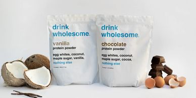 Drink Wholesome is one of my favorite dairy-free protein options because of its simple ingredients and low sugar content. Their powders use collagen peptides or almond protein and are lightly sweetened with monk fruit, with options ranging from 15g protein shakes to higher-protein meal replacements. It’s a practical choice when convenience and ingredient quality matter.